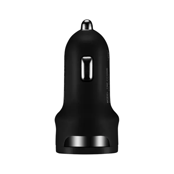 This reliable charger with dual USB allows to charge 2 devices at the same time in a car. Although it has 2.4 A electric current output, its smart system identifies level of amperage of a connected device and provides optimal charge. Black rubber coating is pleasant to touch and perfectly fits with interior of your car. A great choice for those who charge multiple devices in a car.