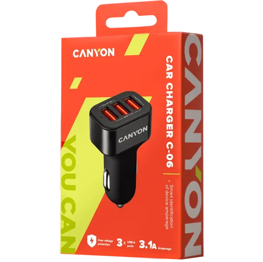 If you and your passenger have multiple gadgets, don’t worry! With these triple car adapters from Canyon you can charge 3 devices altogether. Ultra-firm rim protect the chargers from cracks and scratches. USB ports have built-in smart device identification that ensures decent electric current for all connected devices.