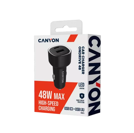 Stay fully charged on the road with the OnDrive 48, a compact yet powerful car charger designed to keep pace with today’s demanding devices. Delivering a total of 48W output, it combines a USB(C) port with up to 30W PD fast charging and a USB(A) port with 18W QC support, ensuring both modern and legacy devices charge at their maximum speed. No matter if it’s your smartphone, tablet, or navigation device, OnDrive 48 offers wide compatibility with multiple fast-charging protocols including FCP, PD3.0, QC3.0, and AFC. This means faster top-ups and less waiting time, even on short trips. Safety is built in at every step. With short circuit protection, a durable PC shell, and intelligent power management, you can charge with confidence. The subtle blue LED indicator confirms active charging while keeping your cabin distraction-free. Sleek, reliable, and powerful, the OnDrive 48 is the perfect solution for drivers who expect more than just basic charging because it’s the smarter way to stay powered on the move.