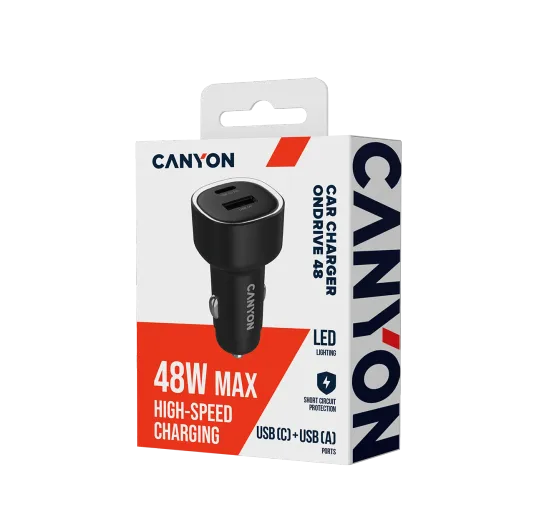 Stay fully charged on the road with the OnDrive 48, a compact yet powerful car charger designed to keep pace with today’s demanding devices. Delivering a total of 48W output, it combines a USB(C) port with up to 30W PD fast charging and a USB(A) port with 18W QC support, ensuring both modern and legacy devices charge at their maximum speed. No matter if it’s your smartphone, tablet, or navigation device, OnDrive 48 offers wide compatibility with multiple fast-charging protocols including FCP, PD3.0, QC3.0, and AFC. This means faster top-ups and less waiting time, even on short trips. Safety is built in at every step. With short circuit protection, a durable PC shell, and intelligent power management, you can charge with confidence. The subtle blue LED indicator confirms active charging while keeping your cabin distraction-free. Sleek, reliable, and powerful, the OnDrive 48 is the perfect solution for drivers who expect more than just basic charging because it’s the smarter way to stay powered on the move.