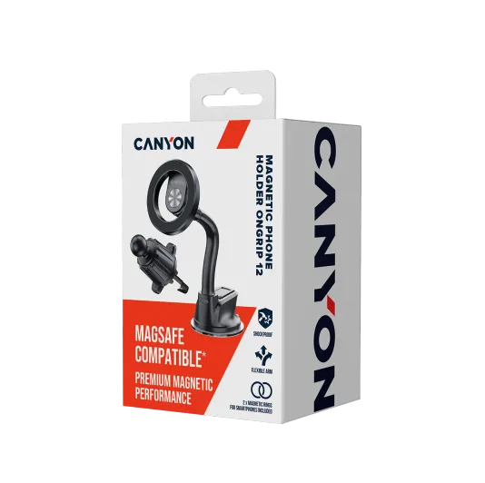 Take hands-free driving to the next level with the OnGrip 12, a premium magnetic phone holder combining strength, adaptability, and style. Featuring 17 high-grade N52 neodymium magnets, it delivers rock-solid suction to keep your phone firmly in place even during sudden stops or on uneven roads. MagSafe compatibility ensures seamless use with iPhones, and two included magnetic rings make it perfect for any other smartphone brand. The set includes not just one, but two different holders — a flexible arm mount and a vent hook mount. This gives you the freedom to choose the setup that works best for your car and your needs. The flexible, shockproof arm is crafted from durable TPU and aluminum, with a reinforced base that attaches firmly to both windshields and dashboards. It allows smooth, precise positioning without wobble, while the dual 360° rotation system gives you full control over both height and horizontal angles. Need to keep your PopSocket or ring holder? The smart hollow-center design ensures compatibility for grips up to 41mm in diameter. Built for the long haul, the industrial-strength damping rotation mechanism has been tested for 2,000 cycles, ensuring years of flawless performance. The second option, a secure metal vent hook, offers a space-saving solution that preserves your dashboard and works with both horizontal and vertical vents.