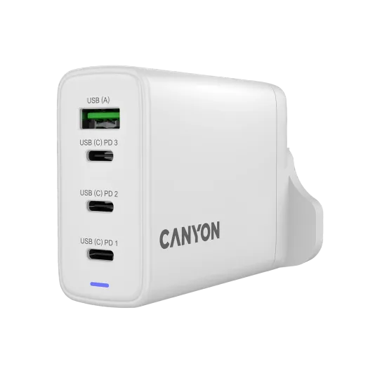 Meet OnCharge 140 UK, the ultimate solution for your charging needs. Built with cutting-edge GaN technology, this high-performance wall charger packs W of power into a compact, travel-ready design. It's your all-in-one product for staying connected and powered up. With four ports, including three USB Type C and one USB (A), you can charge up to four devices simultaneously without sacrificing speed. No matter the device you need to charge, the OnCharge 140 UK has the resources to keep your tech running smoothly. Thanks to its massive power capacity, this charger effortlessly handles energy-hungry devices like laptops, so you can power up quickly and get back to what matters. Despite its might, the OnCharge 140 UK is very compact. It’s small enough to slip into your bag, yet strong enough to be your tech lifeline whether you’re at home, in the office, or on the go. With four layers of safety features – Overvoltage, Overheating, Overcurrent, and Short Circuit Protection – you can trust it to safeguard your devices every time you plug in. Of course, it’s CE RoHs and ERP compliant, meeting the highest standards of safety and efficiency. From lightning-fast charging to travel-friendly design, the OnCharge 140 UK is the charger that delivers the best.